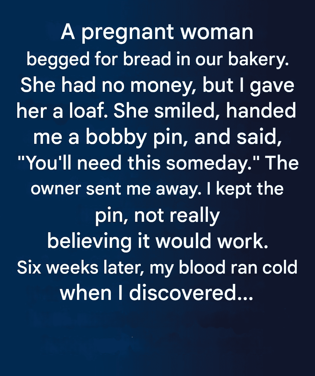 That day, the bakery was quiet, almost too quiet. A pregnant woman pushed open the door, looking hesitant. She humbly asked for a loaf of bread but admitted she couldn't afford it. Before her, the young saleswoman, Camille, felt an instinctive impulse: she offered her a still-warm loaf, simply out of kindness. In return, the customer, Élise, gave her a small hairpin, a modest object given with a grateful smile: "You'll need it someday."