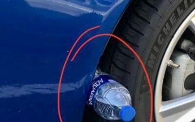 If you see a plastic bottle on your tire, pay close attention.