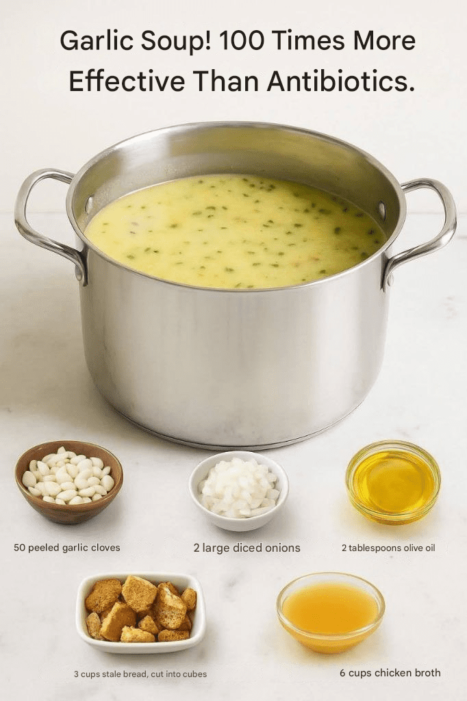 A soup rich in allicin, a powerful antibacterial agent from garlic 👇